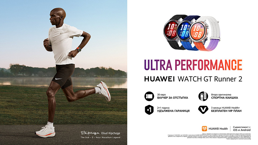 Новият смартчасовник Huawei Watch GT Runner 2, създаден специално за бегачи с различно ниво на подготовка, вече е наличен на българския пазар на препоръчителна цена от 399 евро, а до 15 май 2026 включително и със стартова отстъпка от 30 евро и други екстри.