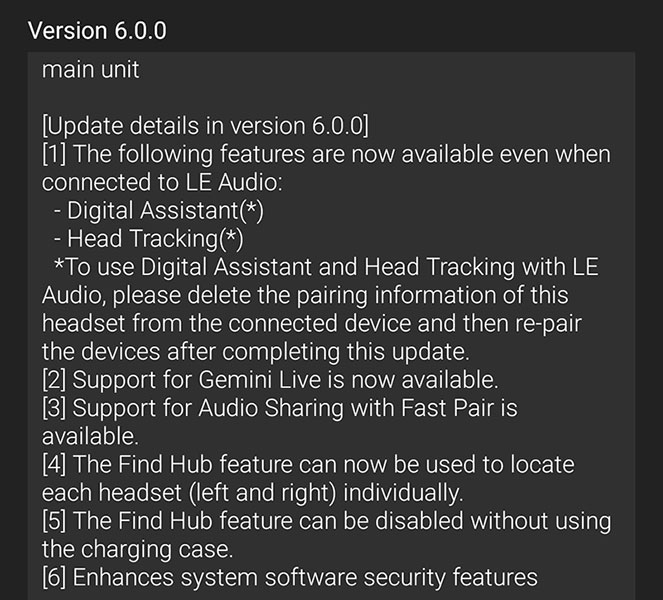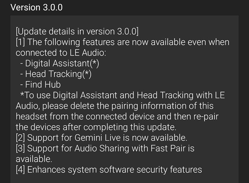 За да използвате дигиталния асистент и проследяването на главата с LE Audio трябва да изтриете информацията за сдвояване на тези слушалки от свързаното устройство и след завършване на актуализацията трябва да ги сдвоите отново.