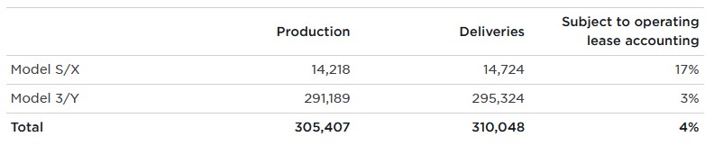 През изминалото тримесечие са доставени общо 310 048 електромобила, което Илон Мъск описва като трудно постижение заради проблемите с доставки на компоненти и спирането на завода в Шанхай. Главният изпълнителен директор на компанията обаче предрича, че тази година ще бъдат произведени 1.5 милиона автомобила.
