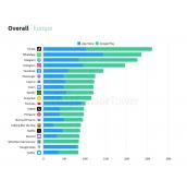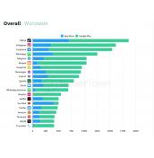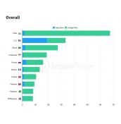 Челната петица за изтегляния по страни остава непроменена спрямо миналата година. Тя включва Индия, САЩ, Бразилия, Индонезия и Русия. Навсякъде, освен в САЩ, преобладават, и то с много, свалянията през Google Play.