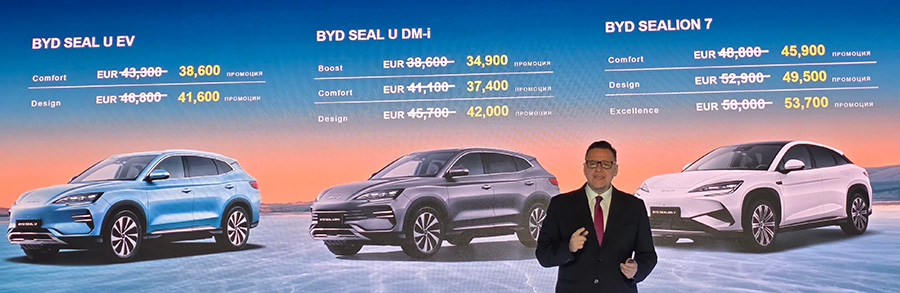 Компанията започва присъствието си на нашия пазар с агресивна ценова стратегия, която ясно показва амбиция за бързо позициониране в сегмента на електрическите и хибридните автомобили. За първите няколко месеца от продажбите, това ще са цените на цялата гама автомобили BYD в България.
