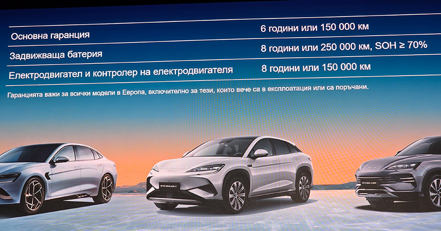 Ето и каква ще е гаранцията на моделите, като тя следва европейската стратегия на компанията. Основната гаранция е 6 години или 150 000 км, за батерията има 8 г. или 250 000 км, а за електродвигателя и неговия контролер гаранцията е 8 години или 150 000 км.