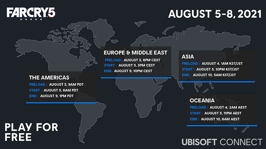 Играта вече може да се зареди в устройствата, които ще ползват потребителите. В Европа началото на свободната игрова сесия е в 16 часа на 5 август, а краят е в 23 часа на 9 август, така че имате много време да се потопите в света на Far Cry 5.