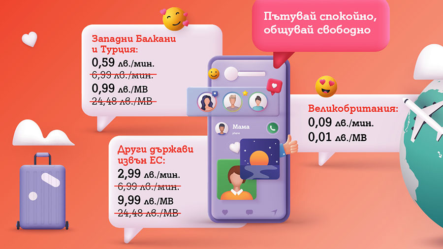 Частните клиенти на мобилна услуга от A1 вече могат да общуват на много по-ниски цени спрямо предишните в страните от Западните Балкани - Албания, Босна и Херцеговина, Косово, Северна Македония, Сърбия и Черна Гора, и Турция. От днес цената на минута е с 91% по-ниска от предходната цена за изходяща минута или 59 ст., а цената на мегабайт мобилен интернет спада с 96%, в сравнение с преди, и вече е 99 ст.