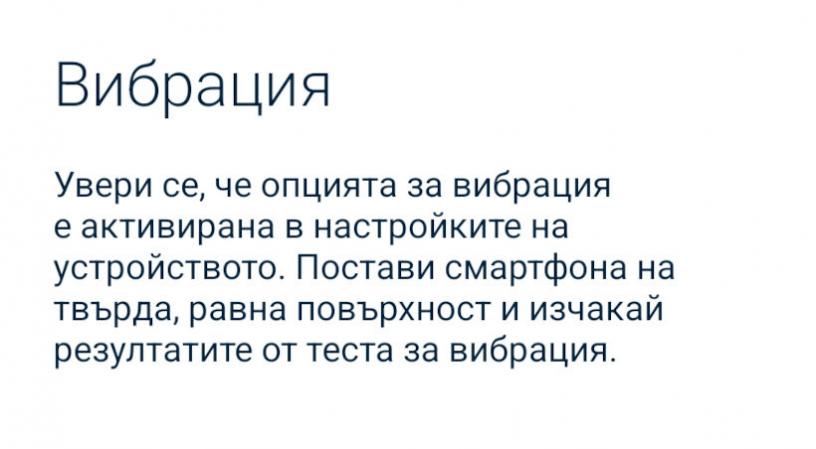 - Функция за вибрация: Проверка на работата на вибрационния модул на устройството.