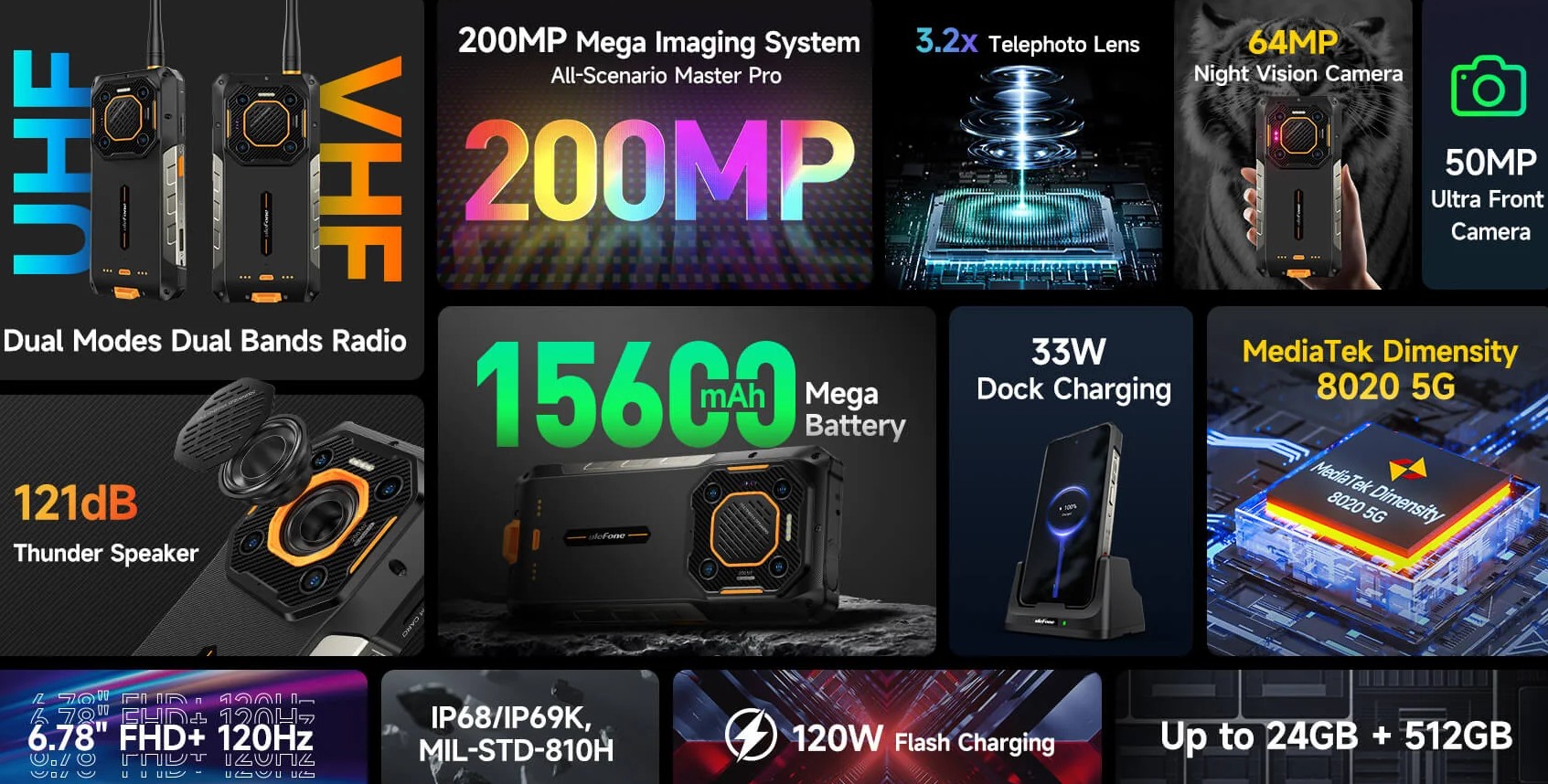 Ulefone Armor 26 Ultra Walkie-Talkie Version (WT) е подготвен за екстремни условия. Това е универсално устройство за професионална комуникация, навигация и наблюдение, което съчетава в себе си всички предимства на стандартната Ultra версия и добавя вградена двупосочна радиовръзка чрез антена и Walkie-Talkie функционалност.