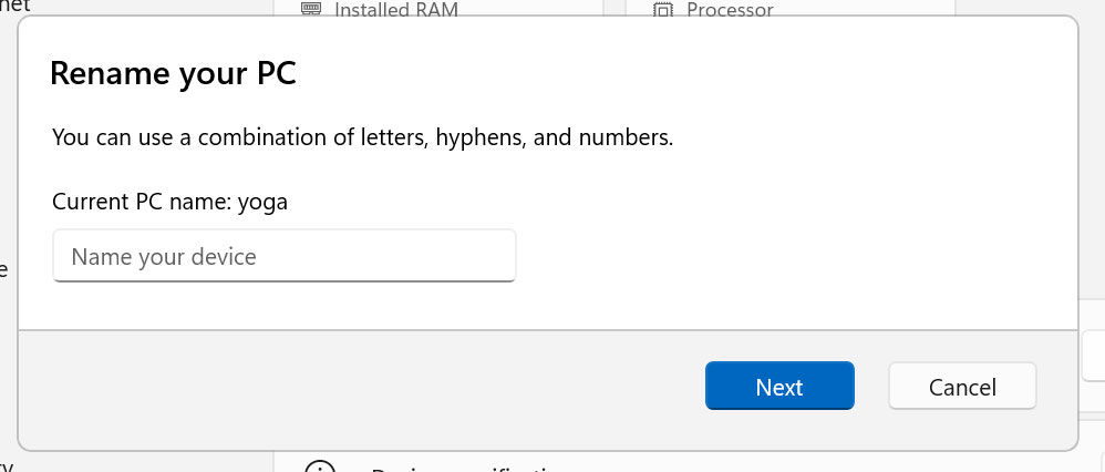 – На екрана ще се появи отделен прозорец. Просто въведете предпочитаното от вас име на устройството и натиснете бутона „Напред“, за да завършите действието.