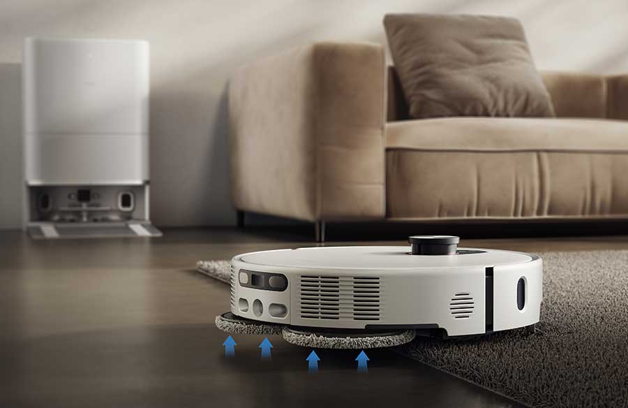 Прахосмукачката също така интегрира усъвършенствана AI интелигентност, като разпознаване на мръсотия и избягване на препятствия с помощта на система с три камери, което помага да се коригират стратегиите за почистване в реално време и по-интелигентно движение измежду предметите на пода. Подобрената му базова станция включва измиване на мопа с гореща вода при 80 градуса, интелигентен режим с предварително програмирана температура на водата и автоматични цикли на повторно измиване, задействани от сензори за мръсотия, което гарантира по-чисти подложки за мопа с минимална ръчна поддръжка.