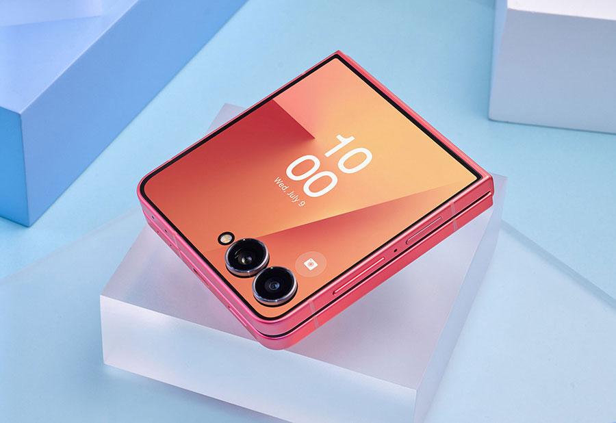 Galaxy Z Flip7 впечатлява с новия външен дисплей FlexWindow, чийто размер е увеличен до 4.1”, а страничните му рамки са едва 1.25 мм. Дисплеят е по-ярък (до 2600 нита), а освен това опресняването му става с честота до 120Hz за изключително плавна работа. Основният дисплей и тук е станал по-голям – 6.9”, но въпреки това леко увеличение на размерите, теглото на модела е само с 1 грам повече от предишния.