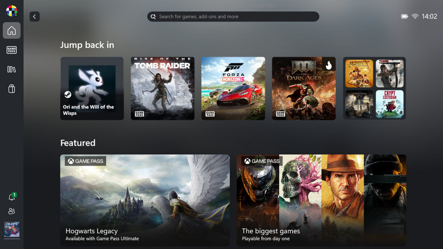 Игрите за Xbox (PC) и Game Pass (PC) могат да бъдат намерени и инсталирани безпроблемно през приложението Xbox, а използването му предоставя потребителско преживяване, което не се различава много от това на конзолата Xbox като се поддържа управление чрез стиковете и бутоните. Добавянето на другите магазини за софтуер става с инсталирането на съответните приложения в Windows, през които получавате достъп до желаните игри. След това те се показват в приложението Xbox в една унифицирана библиотека, което е добро решение.