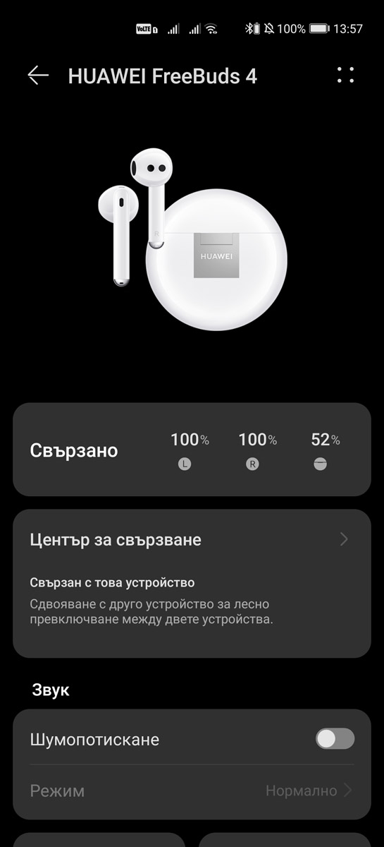 Сред полезните нови добавки при FreeBuds 4 е възможността за връзка на две устройства едновременно. Така ако гледате филм на лаптопа, той ще премине в пауза при входящо повикване през телефона и отново ще стартира при приключване на разговора.