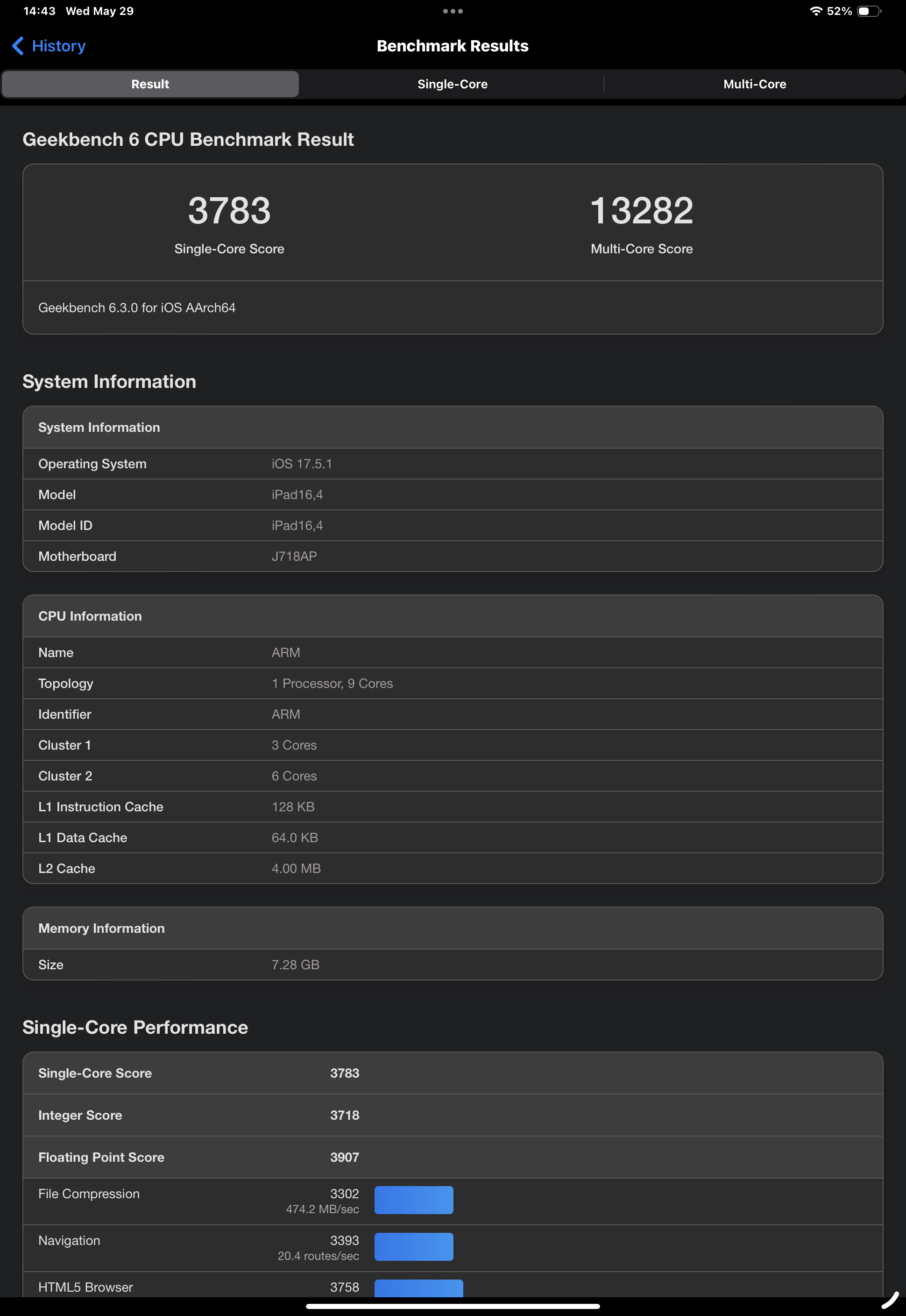 Според сухите статистики от Geekbench, това устройство е първо по всички показатели измежду останалите конкуренти на пазара, но силата му не е в мощността, а в ефективността. Компанията твърди, че Apple M4 може да достави същата производителност като Apple M2, но с наполовина по-малко енергия. Ето и резултатите от всички тестове, които направих: