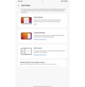 Включени са и функции за продуктивност включително за разделяне на дисплея между две приложения, отваряне в плуващ прозорец, възможност за контрол на това кои приложения се отварят в хоризонтален режим и др. Поддържа се и работа със стилус, който се продава отделно.