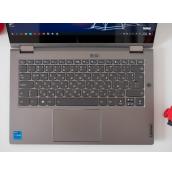 Единствената липса тук е четец за SD карти, но наборът от портове е повече от задоволителен, независимо дали сте преминали към USB-C, или все още използвате по-старите портове. Клавиатурата също е обградена от алуминий, като има подсветка и защита от разливане на течности. Бутоните ѝ са с добър ход, усещане и размери, което я прави много удобна и една от най-силните страни ThinkBook 14s Yoga. Тъчпадът, от друга страна, е сравнително малък и плъзгането по него се усеща леко тромаво.