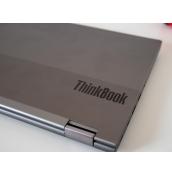Основният материал за изработка на лаптопа е анодизиран алуминий, което веднага оставя впечатлението за добре изработен и здрав корпус, който е приятен на пипане. Горният капак има малко лого на Lenovo, както и по-голямо на серията ThinkBook, които са в тон със сивия цвят и не дразнят окото. Самият капак се отваря лесно с една ръка, а леката издатина помага за хващането му.