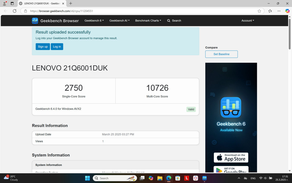 Процесорът е част от серията Lunar Lake и поставя акцент върху ефективността и живота на батерията вместо на високата производителност, но въпреки това не разочарова с представянето си. Това не е геймърски лаптоп, а машина за обща и бизнес употреба, с което ThinkPad X9 15 се справя без проблем.