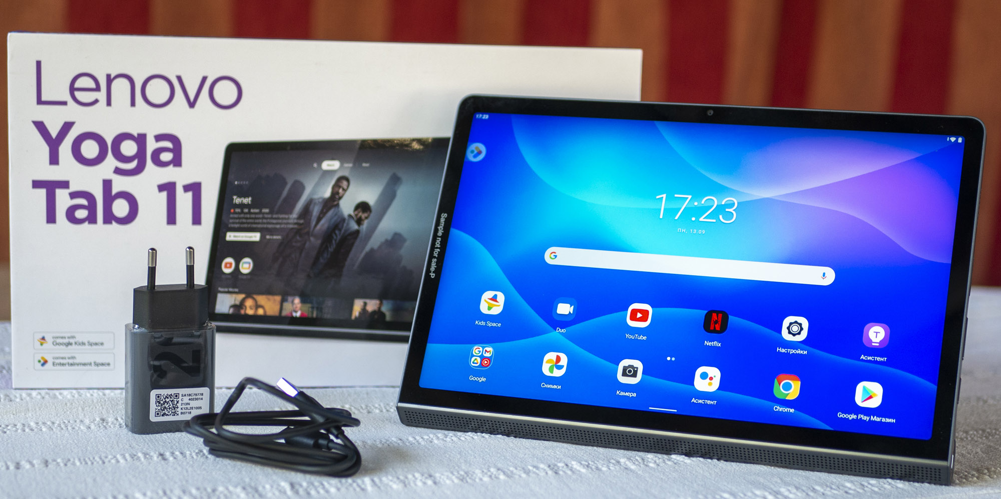 Lenovo Yoga Tab 11 е добре позициониран таблет в горния край на средния сегмент. Това, което го отличава от останалите предложения, е наличието на вградена стойка, която му осигурява по-голяма гъвкавост при употреба. Приятен акцент представлява и текстилното покритие на част от гърба.