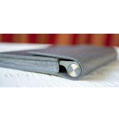 Отзад в долната част е стойката, а интересна черта от дизайна е текстилното покритие на горната задна част на конструкцията. Има и издадена секция с единична основна камера. Опционално можете да изберете още стилус (Lenovo Precision Pen 2) и калъф с текстилно покритие и магнитно затваряне.