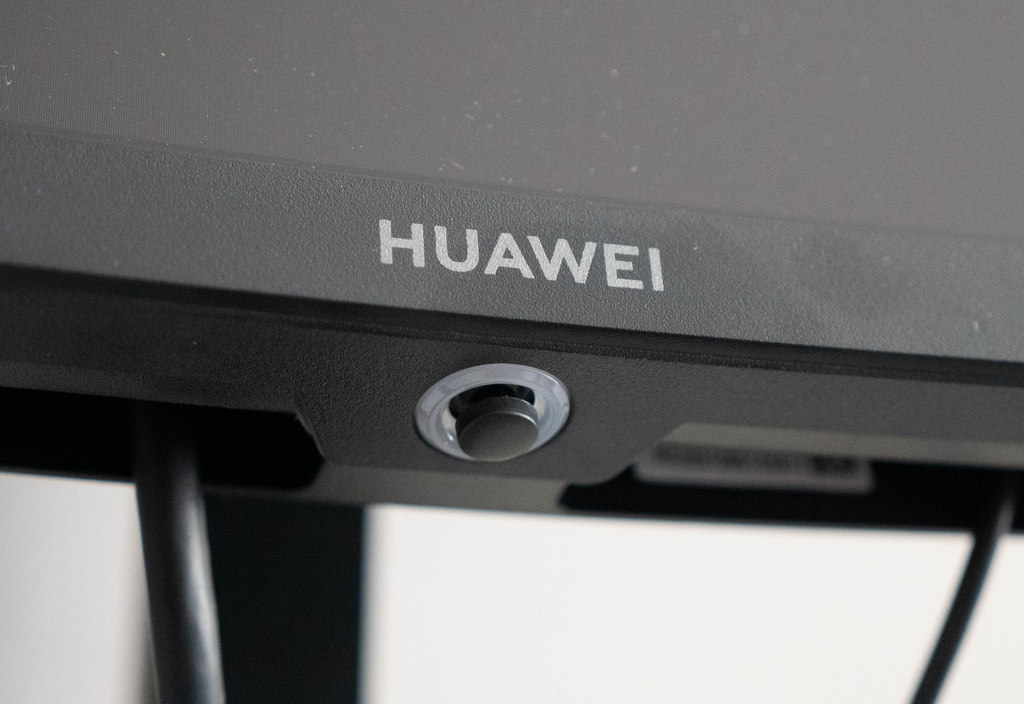 Поставката се закрепва стабилно към задната част на монитора, като има и възможност да не я ползвате, ако решите да го монтирате на подвижно рамо или пък на стената. Стойката позволява настройване на височината на монитора (110 мм) и ъгъла на наклон (от -5 до 20 градуса). Задната част на устройството включва декоративен кръг и голямо лого на Huawei, a в долната част има пластмасово капаче, под което са скрити наличните портове за връзка. Друго решение за кабелен мениджмънт липсва.