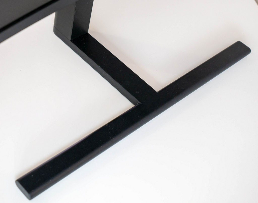 MateView GT 27" посреща с класически дизайн, който е достатъчно изчистен, за да не дразни. Долната рамка е малко по-широка от страничните, които иначе не са от най-тънките (9 мм), но това е свързано и с извитата форма на монитора. Устройството има метална поставка от две части, която трябва да сглобите при изваждане от транспортната опаковка, и за тази цел е необходимо да завиете един винт в долната част - Huawei дори е добавила необходимия ключ в кутията.