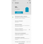 Батерията е с капацитет от 5000 mAh с технология за зареждане при мощност до 10 вата. По данни на компанията с един заряд е възможно постигането на над два дни автономия, което определено е сред положителните черти на телефона. За по-добро представяне са налични решения като адаптивна батерия и режим за пестене на батерията.