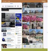 Така например можете да сложите до три приложения едновременно на разделен екран, като едно от тях е частично избутано встрани от екрана, за да се освободи повече място за другите две, без да го затваряте. Докосването му го връща на екрана, за да го използвате. Лентата с икони в долната част пък улеснява подреждането на множество прозорци. Можете да отворите и друго приложение в плуващ прозорец.