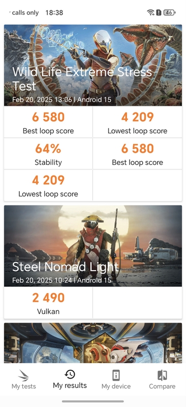 Snapdragon 8 Elite предлага много висока производителност и това е видно от тестовете. Резултатите от тях са сравними с тези на другите модели със сходен чипсет, които вече успяхме да тестваме. В стрес тестовете също получихме очаквана стабилност от около 60%, което показва колко намалява производителността на чипсета при продължително натоварване. При това температурата на корпуса остана в рамките на нормалното и не надхвърли 47 градуса в 3D Mark Wild Life Extreme Stress Test и 42 градуса в Solar Bay Stress Test.