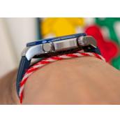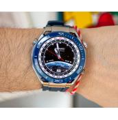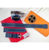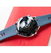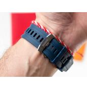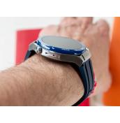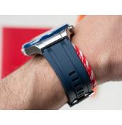 Що се отнася до гумената каишка, тя е от специална гума (hydrogenated nitrile rubber), която също се ползва в традиционните луксозни часовници. Компанията изтъква, че тя е устойчива на масла, вода и на износване, както и че има висока здравина на опън, а освен това е с 30% по-лека от флуороеластомерите. Тя се усеща приятно и при продължително носене на часовника, а освен това създава приятен контраст със синия безел. В комплекта на часовника влиза и дълга гумена каишка за ползване при гмуркане или при каране на ски.