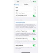 Интерфейсът на приложението за камерата е познат и от другите издания на iOS, така че няма големи изненади в работата му. Преминаването между различните режими става с плъзване на пръст наляво и надясно, а в горната част на екрана има бутони за бърз достъп до някои от функциите. Повече настройки се показват с докосване на стрелката в горната част на екрана – това отваря меню в долната част, което е малко объркващо. Иначе отново липсва про режим, а част от настройките на камерата са поместени в системните настройки на телефона, което не е много интуитивно.