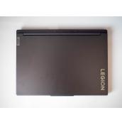 Името на модела не е случайно, защото дебелината му варира от 17.6 до 19.9 мм, а теглото е около 2 кг, въпреки че говорим за 16-инчов геймърски лаптоп. Решетките за охлаждането са съществена част от дизайна, като има общо четири - две на гърба и по една от двете страни. Те са със заоблени ъгли, така че цялостният вид на лаптопа е балансиран и не прекалено агресивен, а решетката над клавиатурата само изглежда като място за говорители. Всъщност оттам, както и от голямата решетка на дъното, охлаждането поема хладен въздух. Капакът е изчистен, като има само деликатни лога на Legion и Lenovo. Той се отваря спокойно с една ръка, а обърнатият прорез в горната част прави това действие по-лесно.