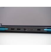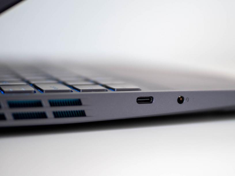 Повечето портове са в задната част на лаптопа, която стърчи зад дисплея. Там са Ethernet порт, два USB-A 3.2, HDMI 2.1 и входът за зарядното. Това разположение прави нещата по-изчистени и е удобно, като в допълнение вляво са единственият USB-C вход и жакът за слушалки и микрофон, а вдясно е още един USB-A порт, с който лесно да свързвате джаджите, които използвате в ежедневието.