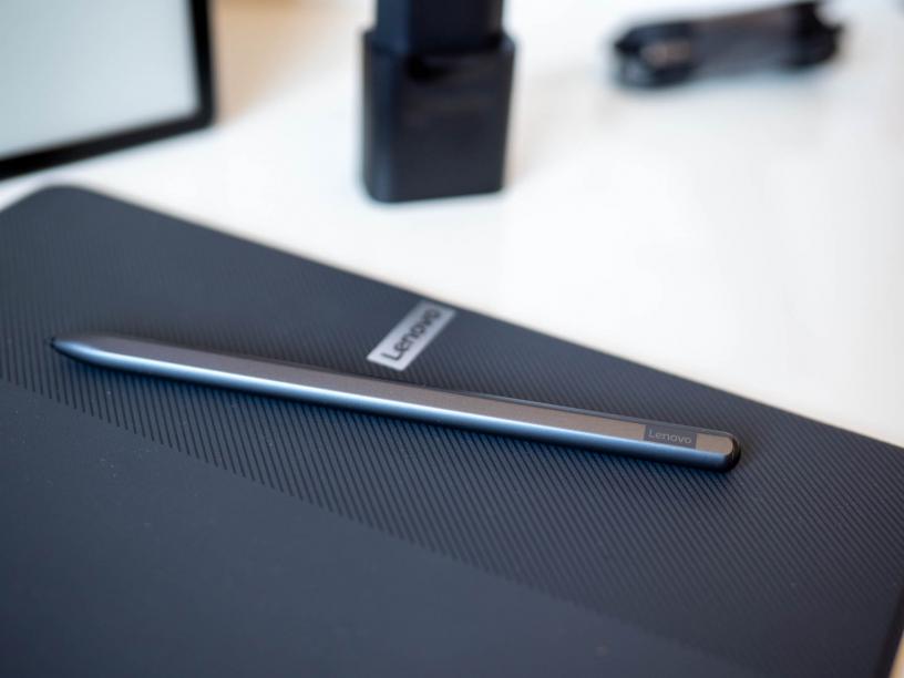 Частта със рисуването е поверена на стилуса, който е сравнително тънък, с цилиндрична форма и една плоска лента, която е магнетизирана и лепва в гнездото до екрана. Тя е удобна и когато писалката е в ръката, тъй като има къде да поставите пръстите си. Стилусът усеща 4096 нива на натиск и работи с електромагнитен резонанс, тоест няма батерия, която да изисква зареждане. Може би най-позитивното е, че комбинацията от стилуса и екрана оставя усещането, че пишете по хартия. Това е приятно и удобно при писане на бележки и е резултат на по-голямото триене и липсата на хлъзгане на стилуса, което се случва при обичайните дисплеи със стъкло отгоре.