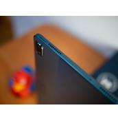 Самите говорители са общо четири, разположени на късите страни на таблета. Звукът от тях е силен, ясен и с наченки на басове, а подобно на говорителите е други подобни устройства са подходящи за гледане на видео. С музика обаче не се справят толкова успешно и преживяването е компромисно. Между говорителите вдясно е USB-C портът, докато вляво е слотът за SIM и карта памет, като на същата страна, но по-нагоре, е и бутонът за заключване. Бутоните за звука са вляво на горната страна, докато отдолу е конекторът за външна клавиатура.