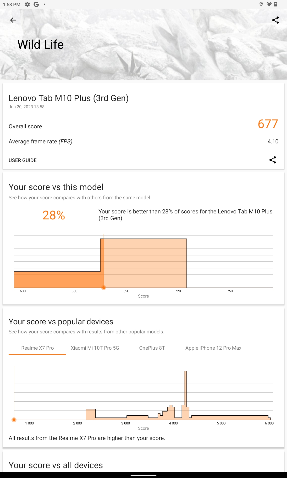 Позитивът на по-слабия хардуер е по-дългият живот на батерията. Тя е с капацитет 7700 mAh и осигурява безпроблемно около 7 часа стрийминг на видео. Нейният минус е, че зареждането става с мощност до 20 вата, а в кутията има 10-ватово зарядно. Затова и е важно да не забравяте да включите таблета в зарядното, преди да си легнете.