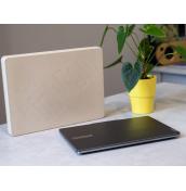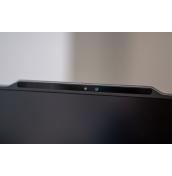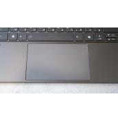 В отворено състояние отличаваме обширен екран с доста тънки странични рамки. В горната му част е леко издигната зона с уеб камера и сензори. Открояват се също така пълноформатна клавиатура (без цифров блок) и голям тъчпад. Отдолу има обширна решетъчна зона за охладителната система.