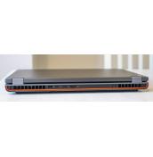 Над пълноразмерната клавиатура има голяма секция за звуковата система, а под клавиатурата има тъчпад с три бутона. Изходът на охладителната система е в задната част на корпуса, а основният въздушен поток идва от дъното на лаптопа, което е с обширни мрежести отвори. За големите си размери, лаптопът е приятен и стабилен.