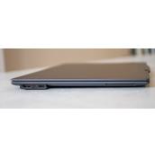 Лаптопът е доста лек при тегло 1.24 кг и компактен с размери от 311.8 x 212 x 13 мм. Така той е достатъчно портативен, за да бъде комфортен спътник в ежедневието. Отчитаме също познатия подход с корпус, който изтънява към краищата. Това придава дори по-осезаемо усещане за тънкост.
