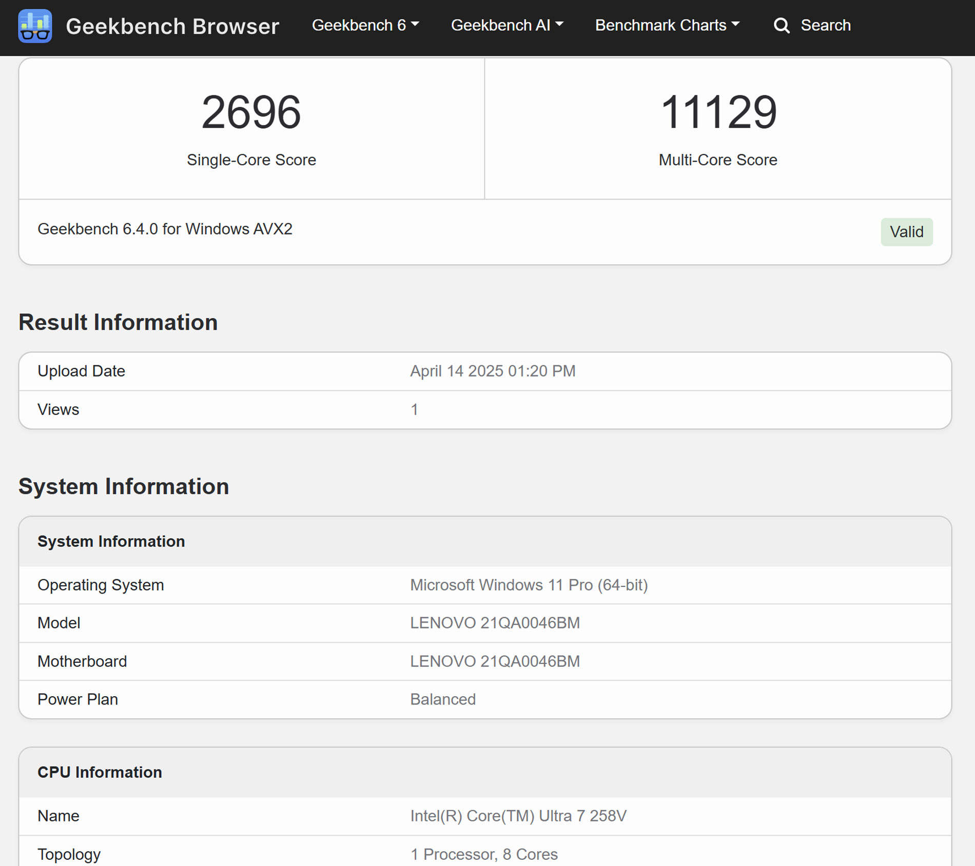 ThinkPad X9 14 е наличен с няколко процесора Intel® Core™ Ultra, а тестовата бройка е с Core™ Ultra 7 258V, който е комбиниран с графичен ускорител Intel® Arc™ Xe2 с AI производителност до над 67 TOPS. Чипът е с осем ядра, 12MB кеш памет и максимална тактова честота до 4.8GHz.