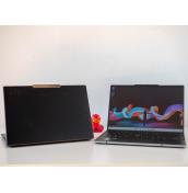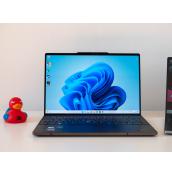 Екранът има две опции - FullHD с IPS LED панел и по-скъпата OLED версия с резолюция 2880x1800 пиксела, която тествах аз. Общото между двете опции е съотношението от 16:10, яркостта до 400 нита и това, че са тъч екрани. Естествено, OLED вариантът предлага по-висок контраст с типичното за този тип панели плътно черно, но по-високата резолюция се отразява на живота на батерията. Въпреки това картината от този екран е много приятна и с чудесни цветове, които са малко по-топли от перфектното, но все пак изключително точни. Ако има минус за този екран, това са отблясъците, които сякаш са неизбежни и при конкретни условия могат осезаемо да пречат.