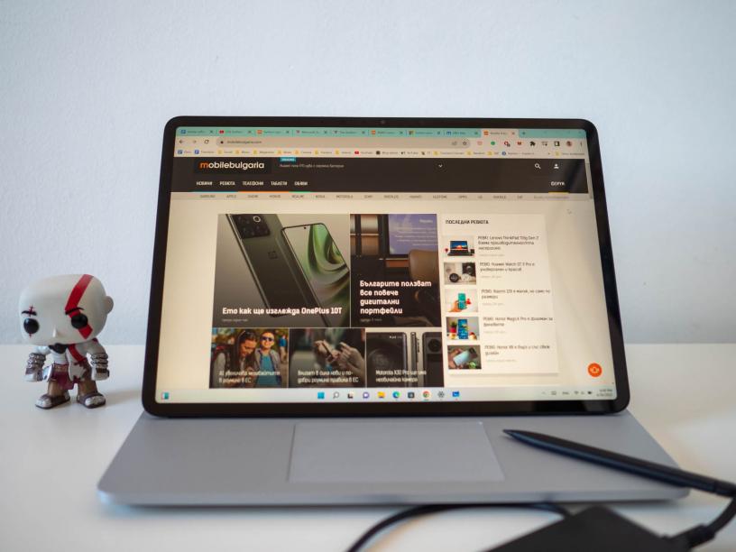 Елемент, който се оказа, че не е на нужното високо ниво е животът на батерията. В моята ежедневна работа с браузър, текстообработка, малко Photoshop, много чатове и почти никакви видео обаждания, тя издържаше около 6 часа. Потенциално можете да си осигурите още около час ако намалите честотата на опресняване на екрана и яркостта му.