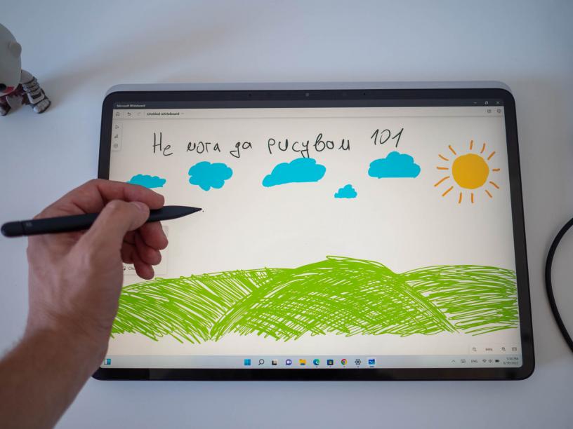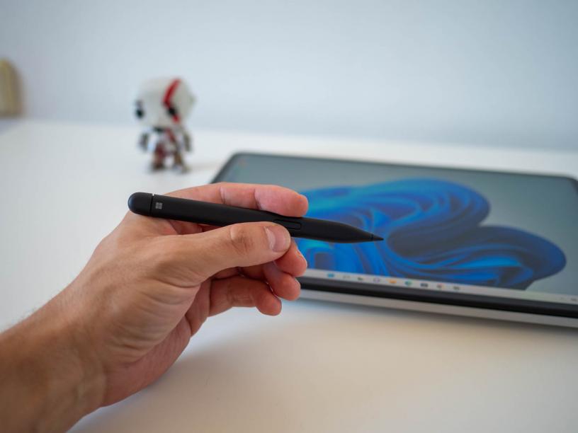 Една от гордостите на Microsoft при представянето на Surface Laptop Studio беше Surface Slim Pen 2. Стилусът се закрепя чрез магнити за долната част на лаптопа, където може да се съхранява и зарежда. Това е приятно и елегантно решение, тъй като магнитите са достатъчно силни, че писалката да стои стабилно и да не се пречка, когато не я използвате.