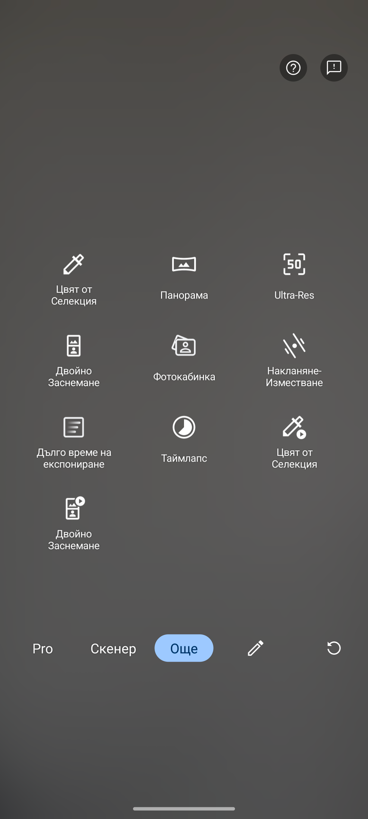 Сред режимите за снимане са портрет, видео, нощен, професионален, пълна резолюция, цвят от селекция и т.н. Новост е опцията за сканиране на документи. Заслужава си да отбележим и Skintone валидацията от Pantone, която е за естествено предаване цветовете на кожата.