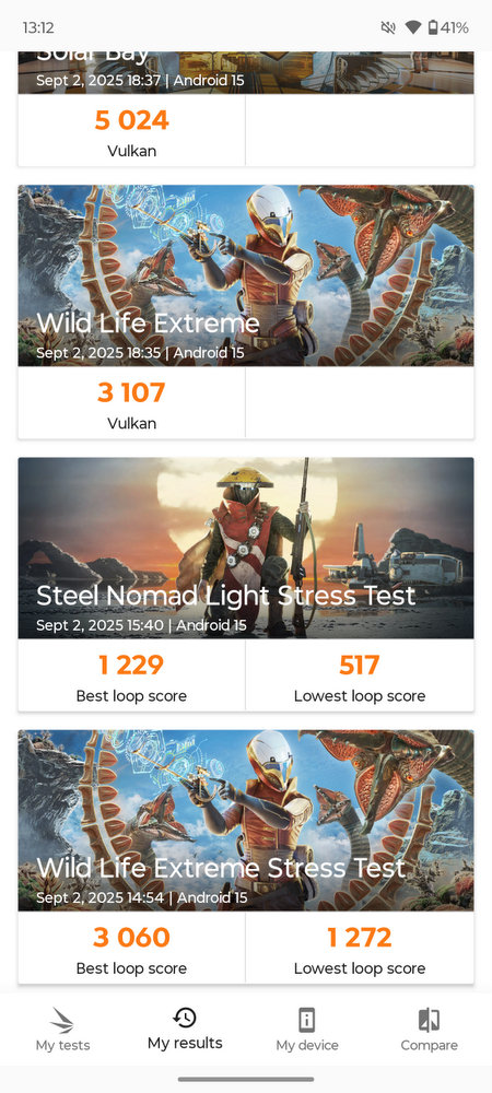 Спрямо Snapdragon 7 Gen 3 в предходния модел производителността е увеличена значително, което определено е добра новина. Това се вижда добре от резултатите от сравнителните тестове със сериозно увеличение процесорната и графичната обработка. При стрес тестовете беше постигната стабилност от около 41%, което показва колко добре се справя охладителната система при продължително графично натоварване. Въпреки това температурата на телефона остана в рамките на нормалното.