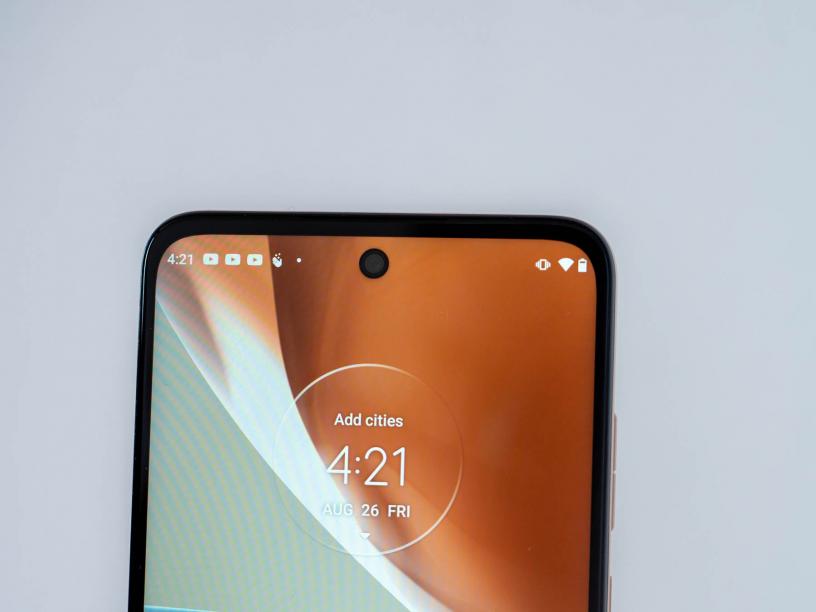 За разлика от OLED панела на предшественика му, дисплеят на moto g32 е с IPS LCD панел, който обаче поддържа 90 херца честота на опресняване. Картината му е по-плавна, но ъглите на видимост са по-лоши. Все пак екранът изглежда приятно, с леко студени цветове и добра яркост. Резолюцията му отново е 1080x2400 пиксела, докато диагоналът е 6.5 инча. Рамките отстрани са тънки, докато тази отдолу е по-осезаема, а горе е отворът за селфи камерата.