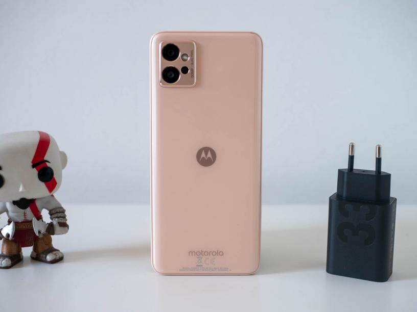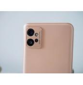Бройката на moto g32, която тествах, беше в цвят Rose Gold, но пластмасовият панел на гърба, както и пластмасовата рамка определено не ми оставиха впечатлението за този цвят. По-скоро бих казал, че тази версия е в кремавo, който е необичен и значително по-приятен цвят от този в рекламните материали. Единствено островът за камерата, който изпъква деликатно над гърба, носи усещане за злато, като комбинацията наистина е чудесна.