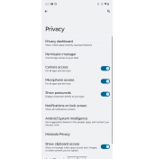 Друг познат елемент са елементите за сигурност, включително Privacy Dashboard и индикаторите за използване на камерата и микрофоните. Функциите от Motorola са групирани в отделно приложение, което включва добре познатите жестове като двойно завъртане на телефона за активиране на камерата, както и други опции като тази дисплеят да не загасва, докато го гледате. В секцията Play на приложението са настройките на Gametime за допълнителни настройки по време на игра. В секцията със съвети пък е включена специална информация за работата с Razr 2022.
