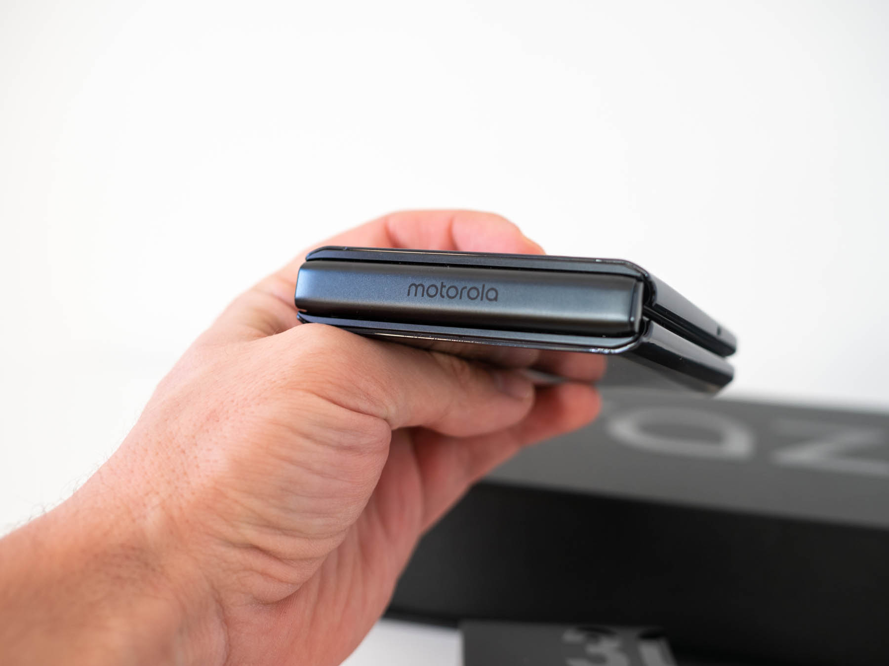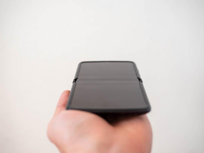 Друг елемент, който е важен в този тип модели, е пантата и тук тя е от неръждаема стомана и с чудесно изпълнение. Отварянето и затварянето са много плавни и меки, като телефонът може да седи полуотворен в почти всякакви позиции. По-интересното е, че отварянето става много по-лесно и с по-малко сила, отколкото в други сгъваеми модели. Това всъщност може би е най-впечатляващият елемент в дизайна на Razr 2022, но за съжаление отварянето с една ръка все още е трудно заради по-широкия профил на телефона.