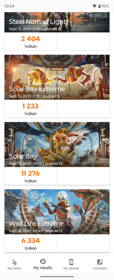 Това е чудесно представяне, но стрес тестовете се оказаха предизвикателство за устройството. Така например стрес теста 3DMark Wild Life Extreme не успя да завърши заради прегряване, което и индикатор за работата на охладителната система при продължително високо натоварване. Това е поведение, което често се среща при сгъваемите телефони заради тяхната конструкция и не е показателно за ежедневната работа, която в случая на Razr 60 Ultra е безпроблемна.