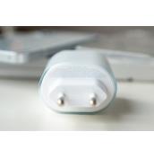 Отзад в единия ъгъл на корпуса откриваме двойната камера, която включва и два метални пръстена около двата обектива. Това кара телефона да се поклаща леко при поставяне върху твърда повърхност, но това може да се отстрани с ползване на официалния предпазен калъф, който изравнява нивото. Той обаче се продава отделно. Ще трябва и да се снабдите със зарядно, защото в комплекта няма такова.