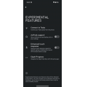 Има и Always-on Display функция, която работи в духа на iOS и затъмнява заключения екран, така че уиджетите и монохромният часовник остават видими. Секцията с експериментални функции е интересна, като включва възможност за директна връзка с автомобили Tesla, без да е нужно приложението. Там е и поддръжка на свързване с AirPods и Enhanced Touch Response. Последната опция би трябвало да подобри отговора на докосвания при някои игри.